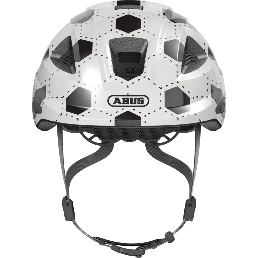 Abus Anuky 2.0 – надёжный и комфортный шлем для малышей и дошкольников, созданный с учётом анатомических особенностей детской головы. Дизайн White Football с футбольным мячом понравится юным спортсменам, а родителям – продуманная защита и удобство в использовании.