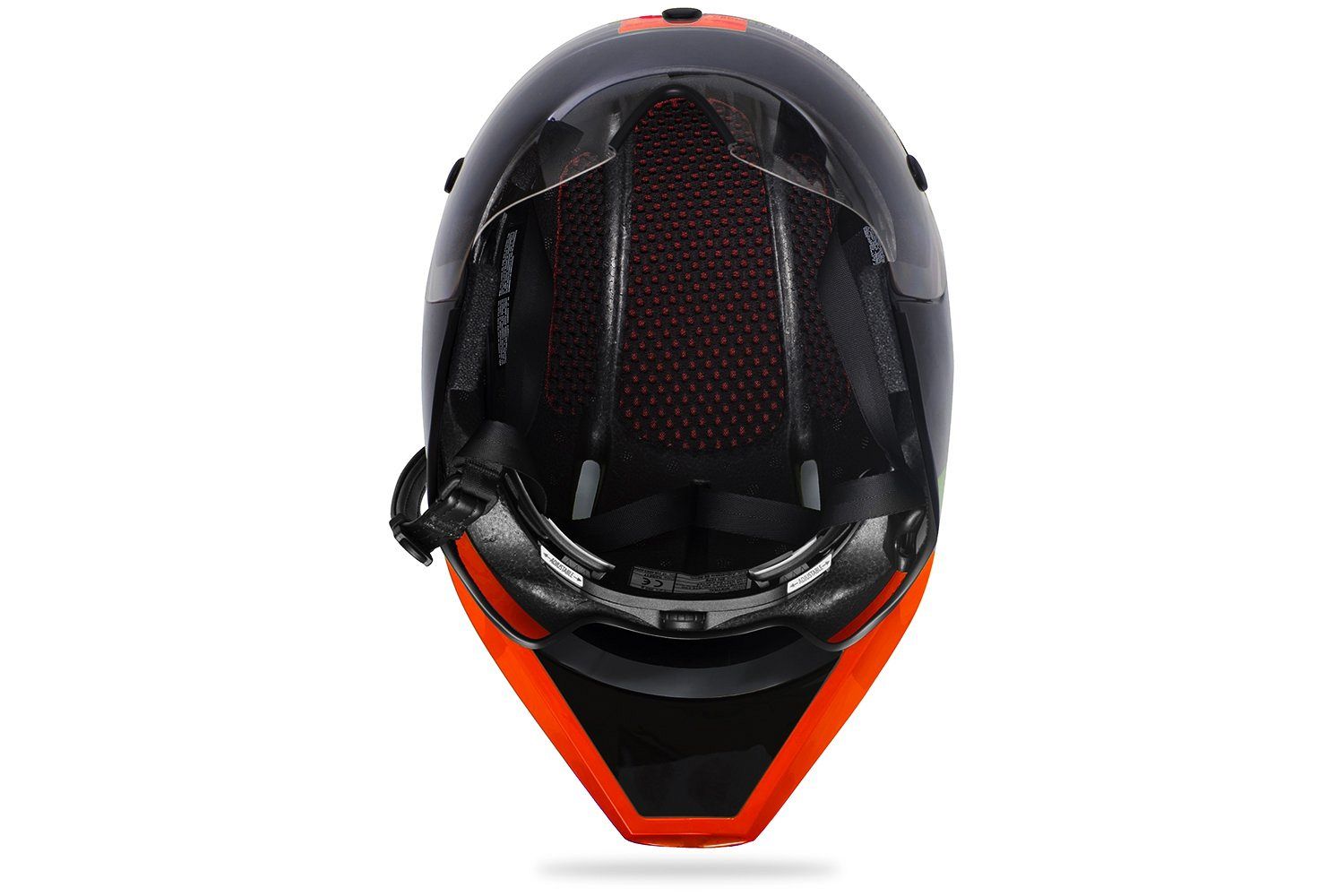 Этот чрезвычайно аэродинамический шлем имеет шесть передних отверстий для входа прохладного воздуха и два задних отверстия для отведения горячего воздуха от головы, а также расширенные внутренние воздушные каналы, которые предоставляют гонщику постоянный комфорт и вентиляцию. Внутри имеется прокладка 3D-Dry с поверхностью в форме сот, чтобы обеспечивать дополнительную вентиляцию и комфорт.