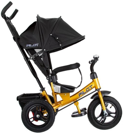 Велосипед трехколесный Pilot PTA3, с ручкой управления, черно-желтый