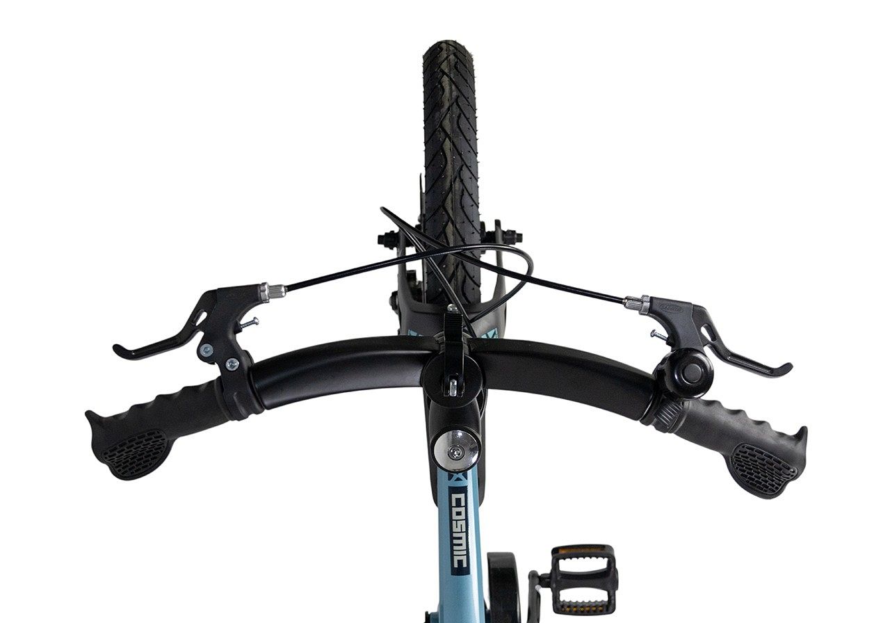Maxiscoo Cosmic Deluxe 16 продуман до мелочей. Складной руль из облегчённого магниевого сплава с регулировкой по высоте и эргономичной посадкой «спорт/комфорт» позволяет подстраивать велосипед под индивидуальные параметры ребёнка, обеспечивая идеальное сочетание удобства и контроля. Нескользящие грипсы с поддержкой запястья гарантируют надёжный хват, что особенно важно во время активного катания.
