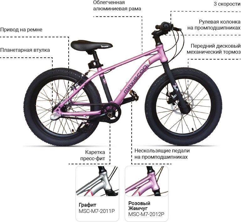 Велосипед Maxiscoo 7Bike М700 20 (2025), розовый