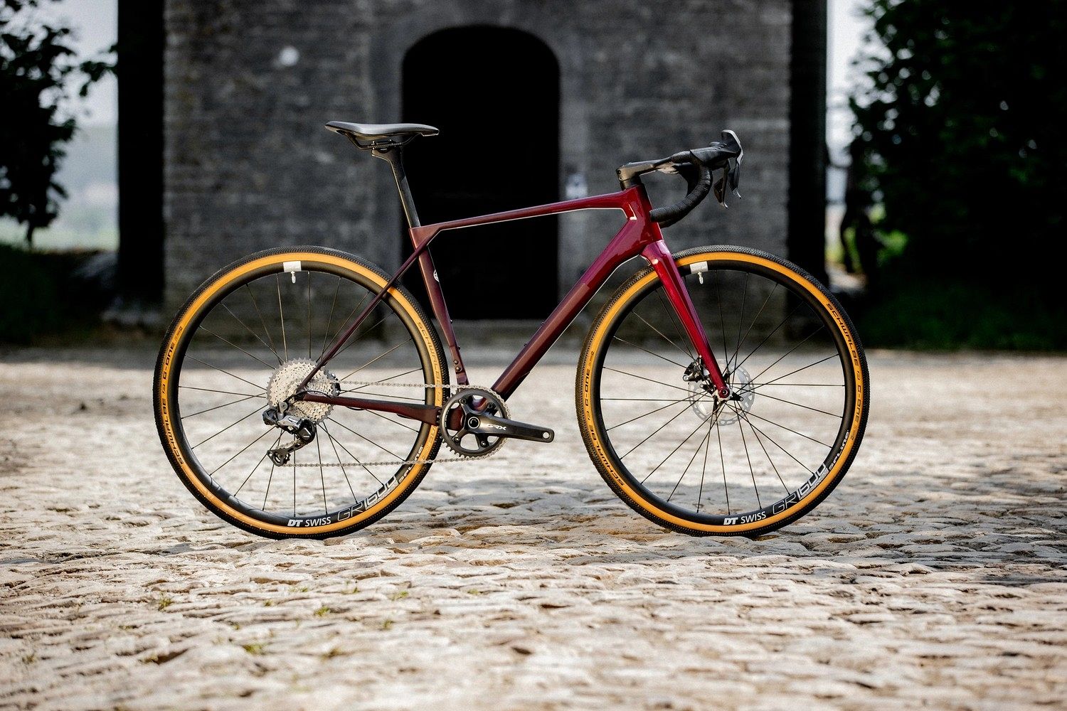 – Передача Shimano GRX 1x12. Плавное переключение, широкий диапазон с кассетой 10-45T.