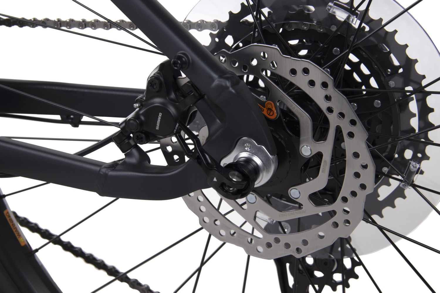 Гарантия не распространяется на камеры, покрышки, на тросики переключения скоростей и тормозные тросы, на тормозные колодки и диски.