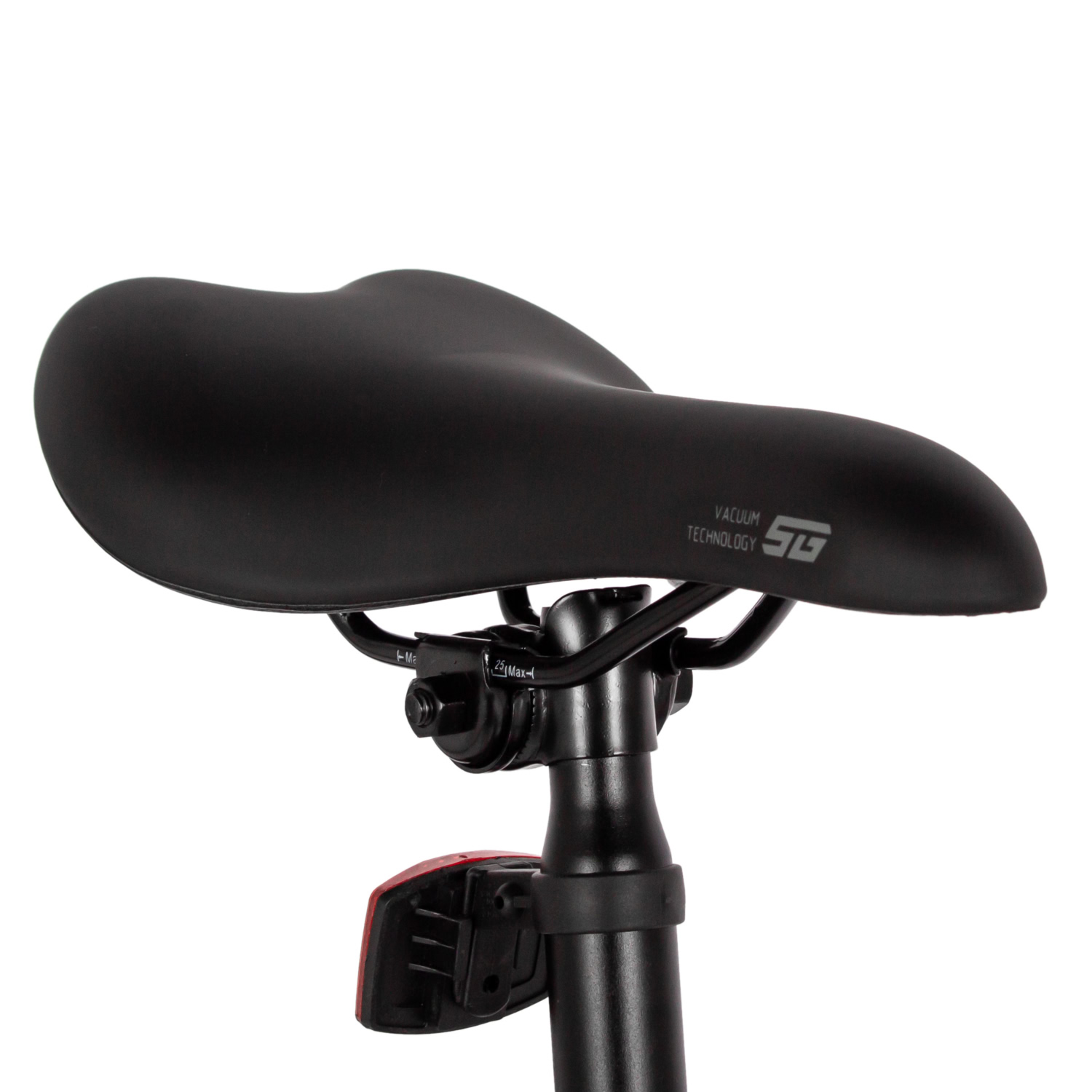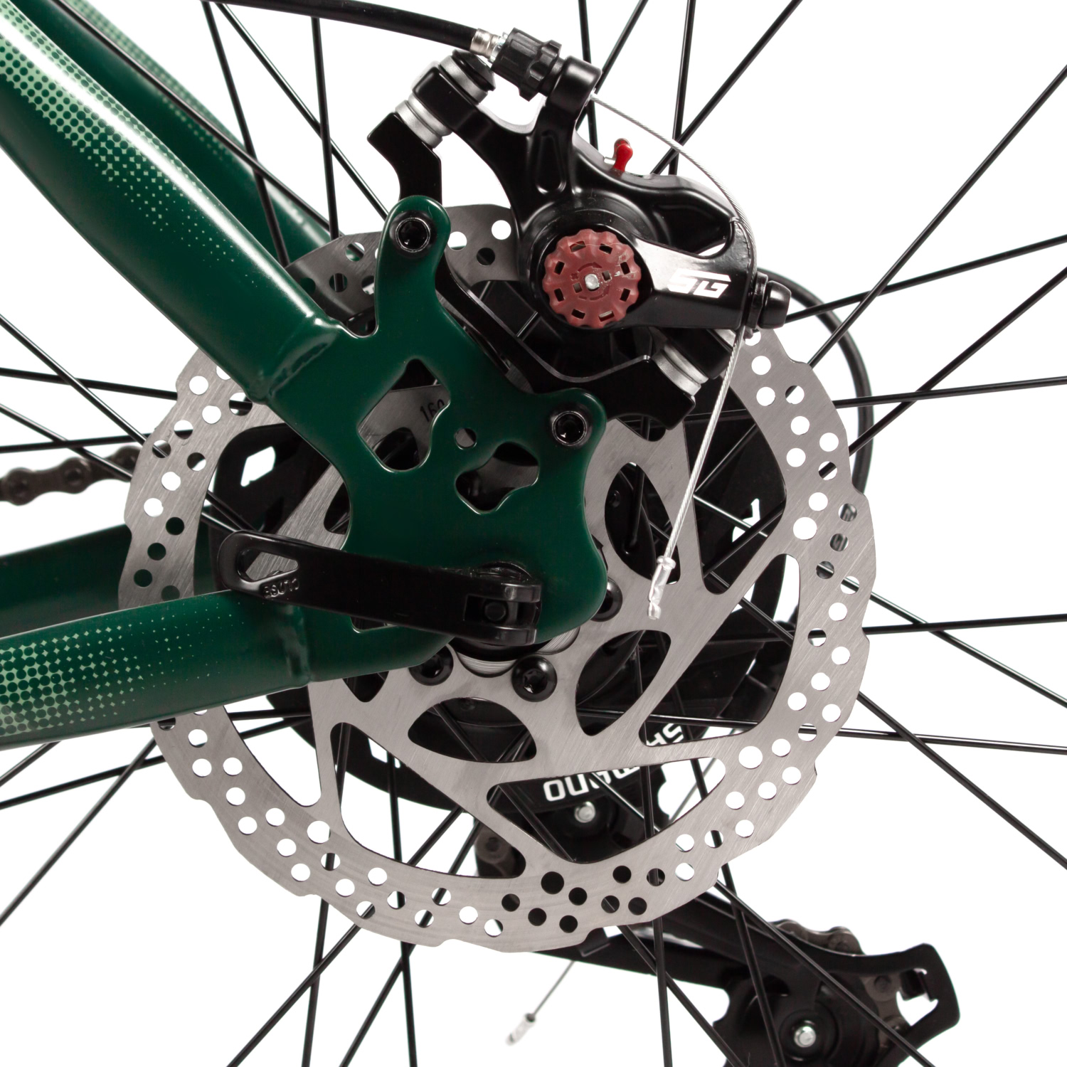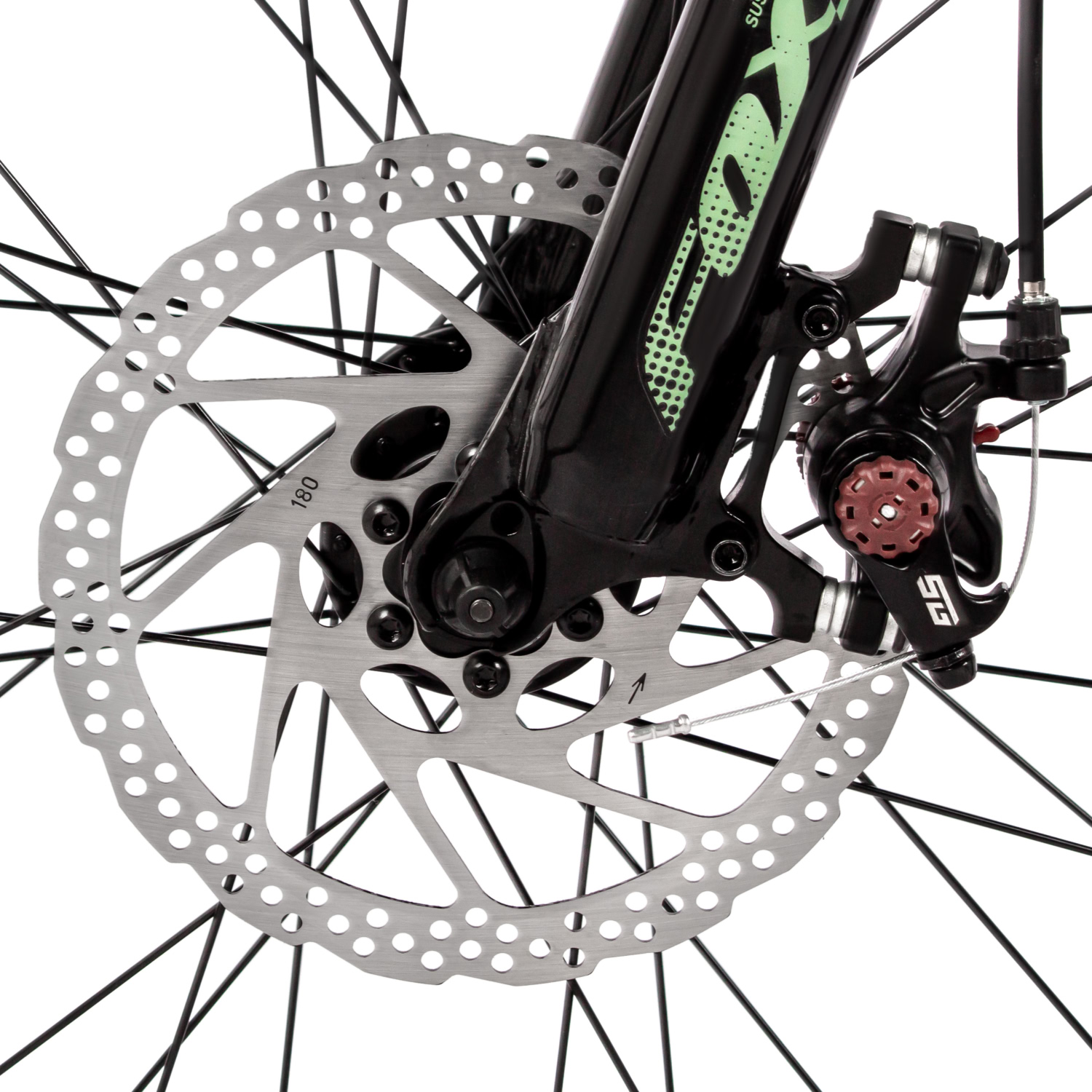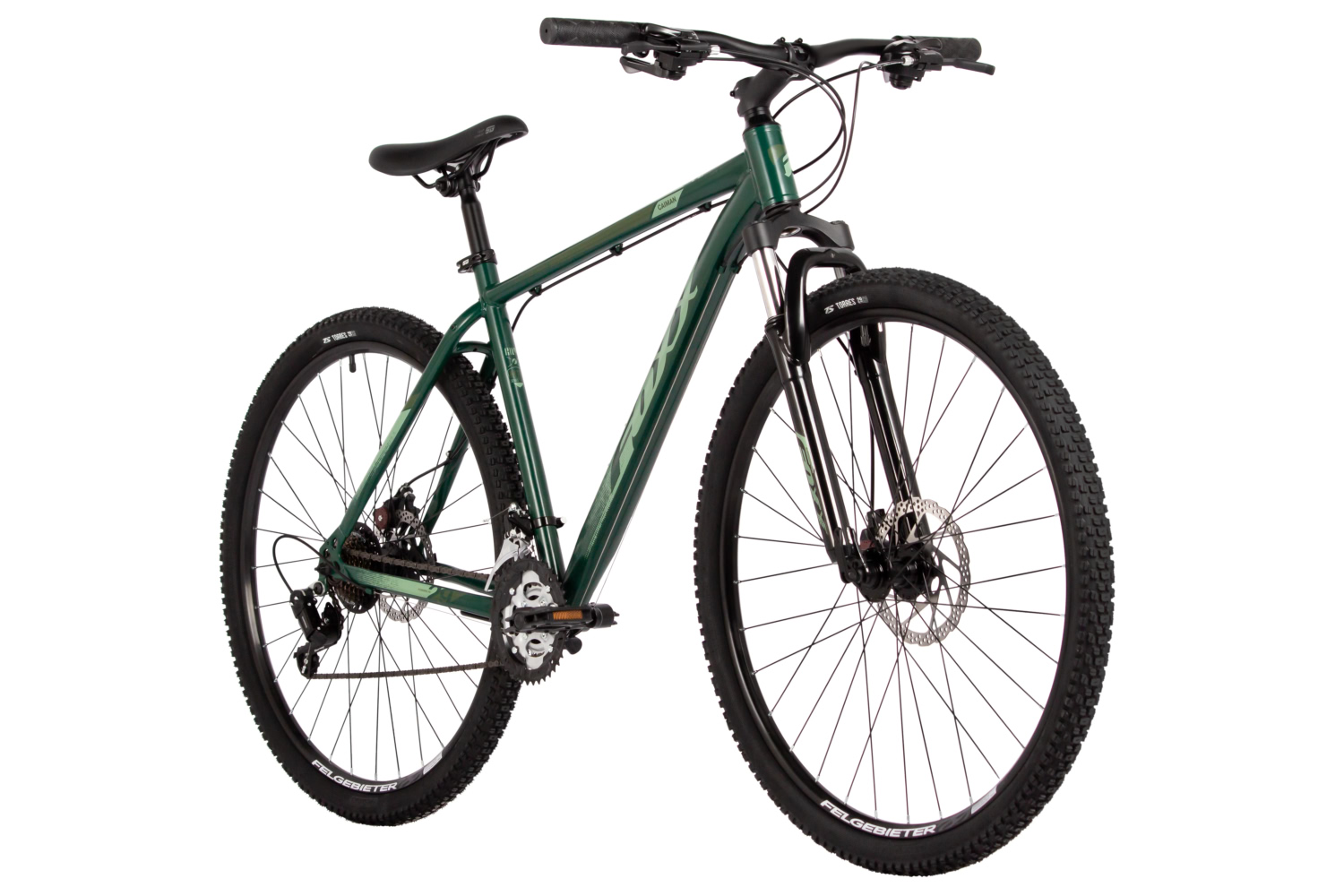 Дисковые механические тормоза STG с роторами 180/160 мм гарантируют надёжную остановку в любых условиях, что особенно важно для безопасности на сложных участках. Втулки с дисковыми стальными элементами и QR (эксцентрик) упрощают процесс замены колёс. Обода Felgebeiter VB-18 добавляют дополнительную прочность и устойчивость к нагрузкам.