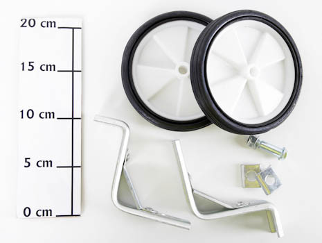 Широкие качественные боковые колеса подходят к детским велосипедам и позволяют детям научиться держать равновесие.