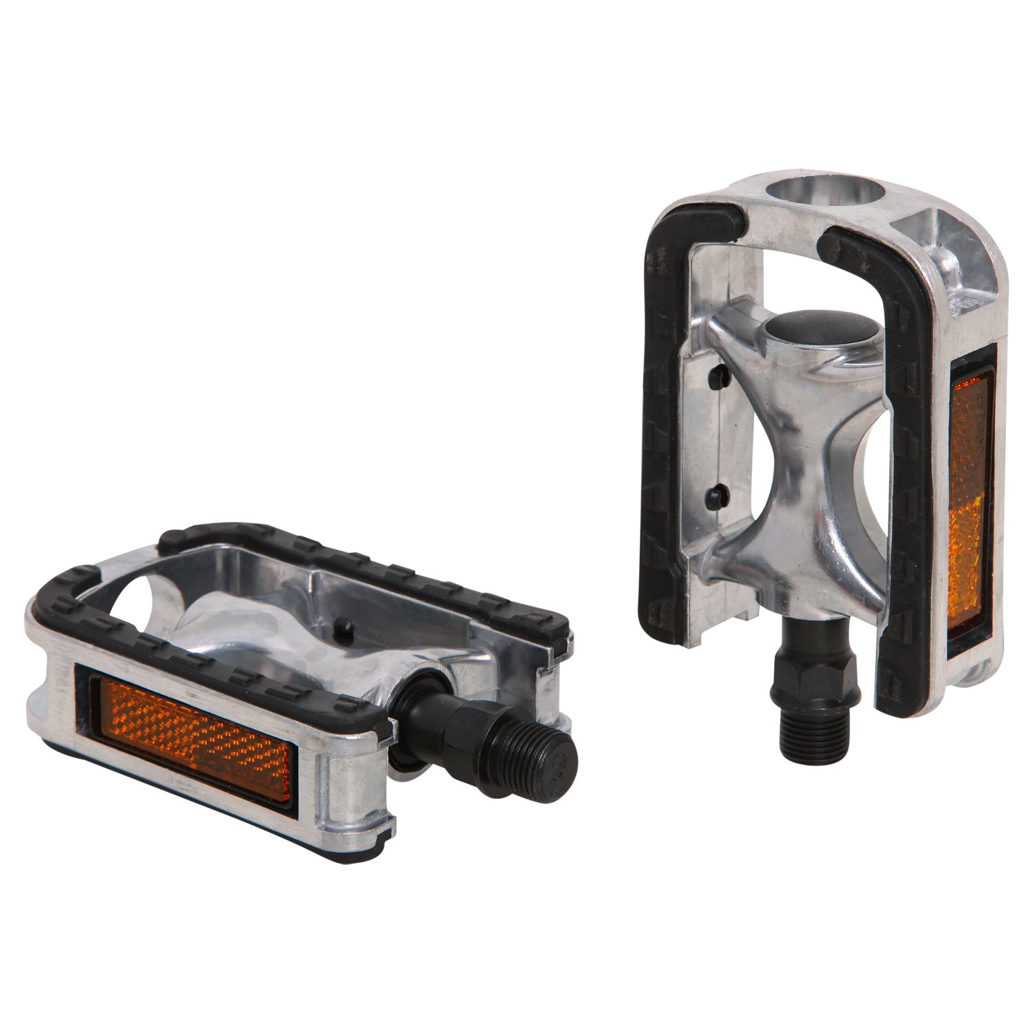 Стальные педали с черной пластиковой рамкой с катафотами.