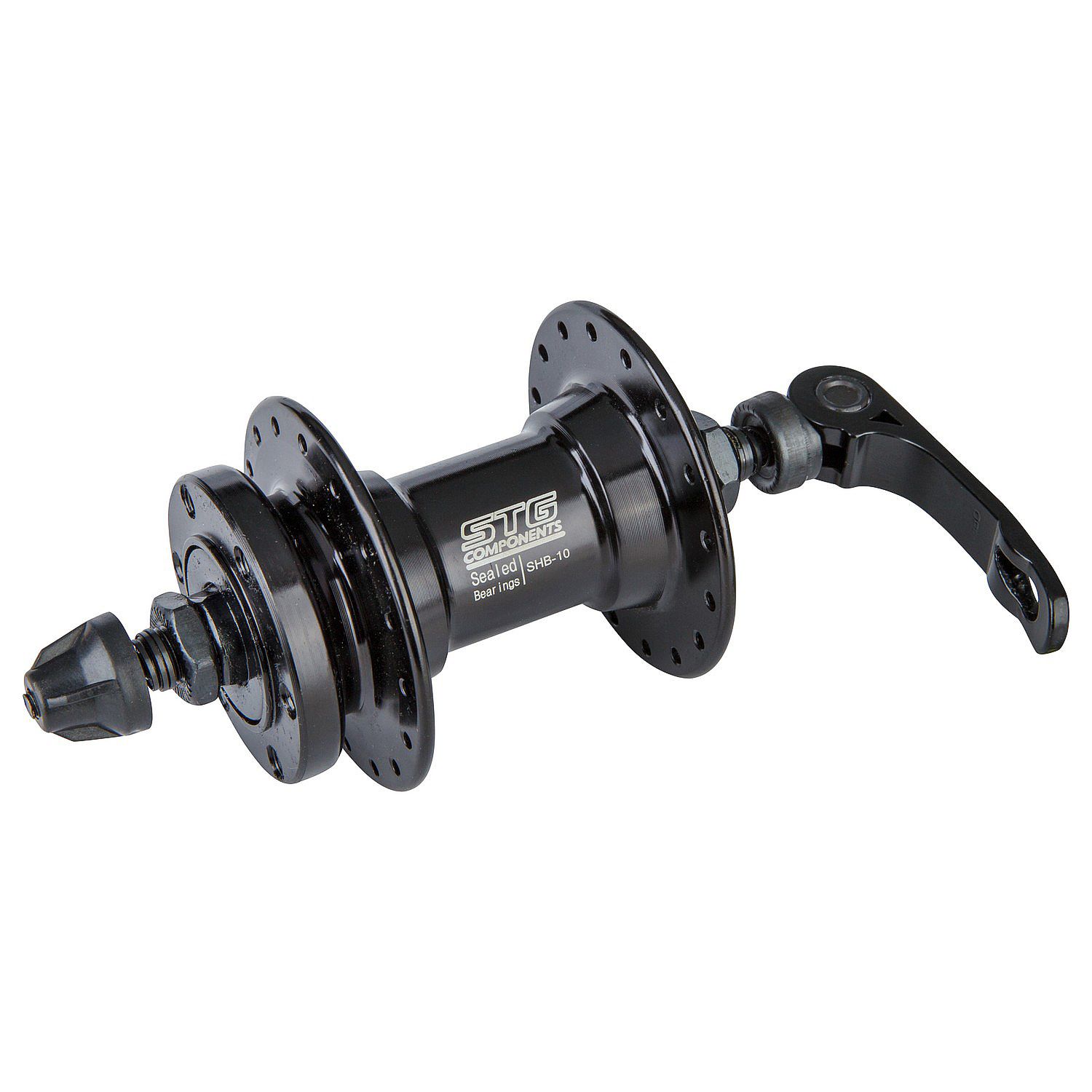 Втулка STG B10 передняя, под дисковый тормоз 6 болтов.На 32 спицы под эксцентрик на пром. подшипниках. Материал алюминий.