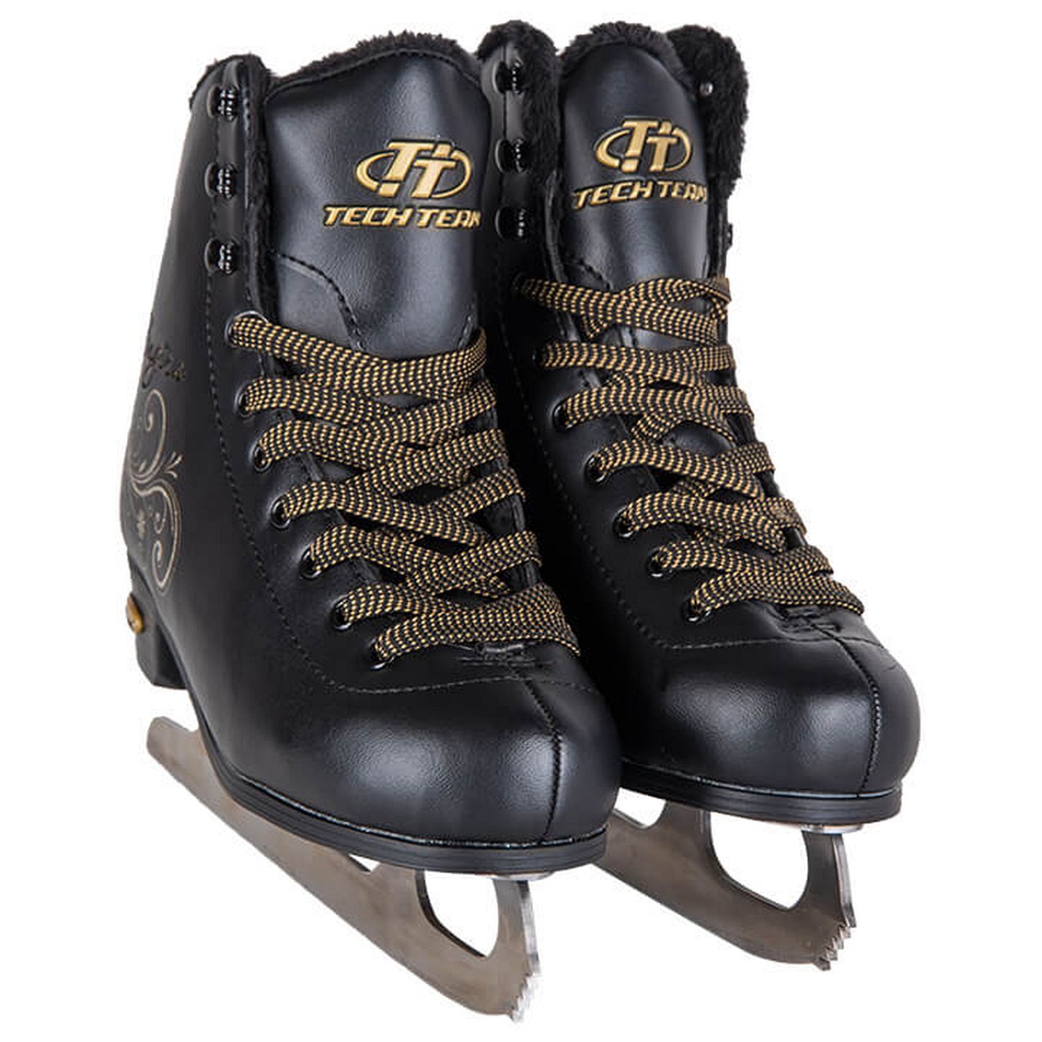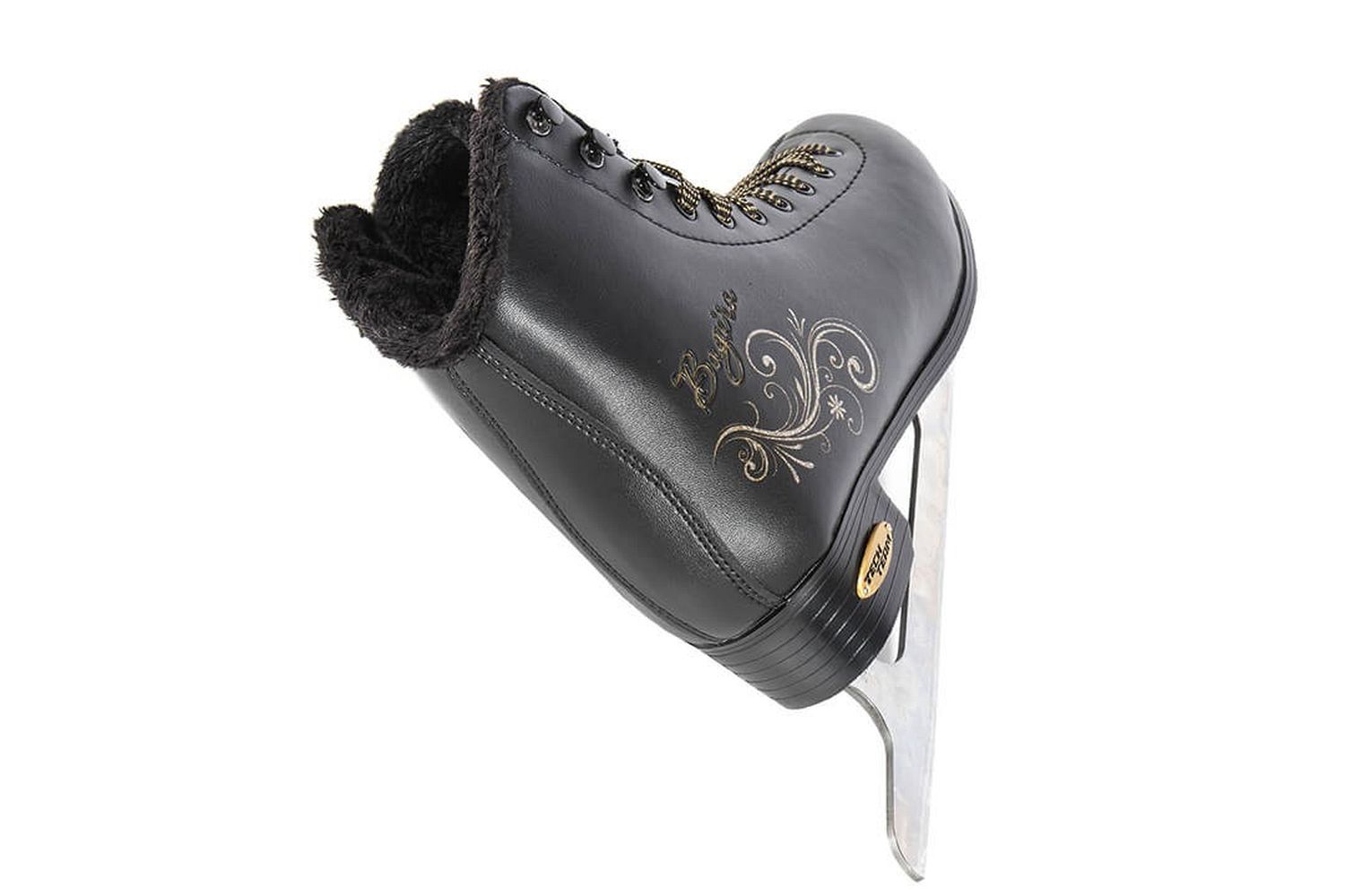 Практичные женские фигурные коньки с ботинком из морозостойкой искусственной кожи и подкладкой из искусственного меха.