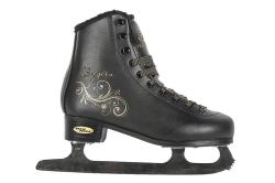 Практичные женские фигурные коньки с ботинком из морозостойкой искусственной кожи и подкладкой из искусственного меха.