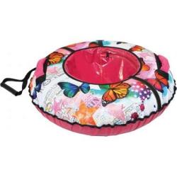 Тюбинг с ярким принтом изготовлен из прочного тента, который устойчив к морозам до 28 градусов, все швы усилены капроновой лентой.